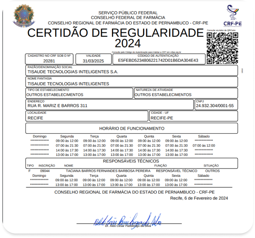 telefarmácia, homologados pelo Conselho Regional de Farmácia de Pernambuco (CRF-PE) e pelo